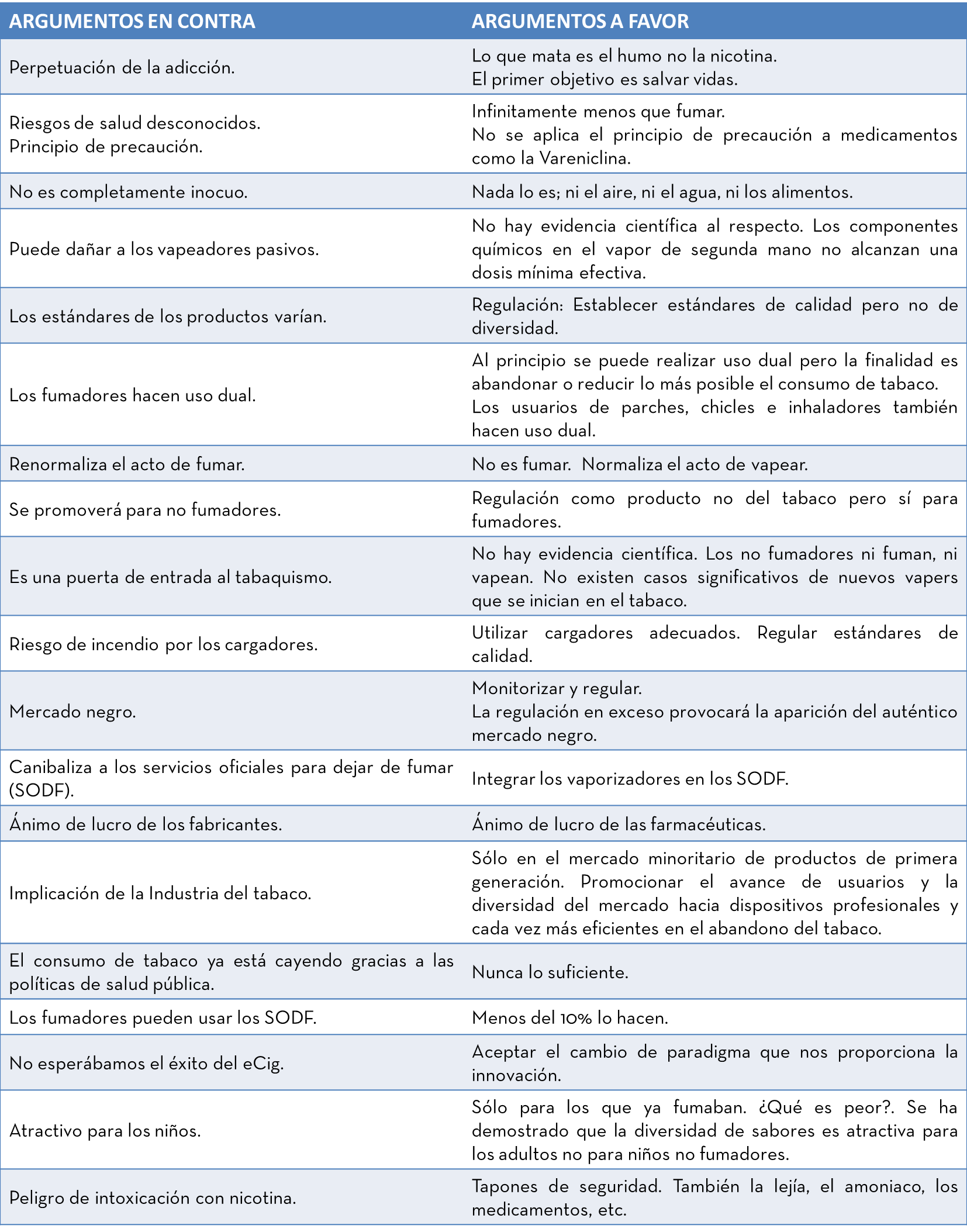 La batalla, pese a lo que pueda parecer, no se basa en la evidencia científica, pues  es una obviedad que ya ha sido demostrada sobradamente la baja toxicidad del producto en comparación con el tabaco. La batalla se centra realmente en las emociones, ideologías y prejuicios personales de uno y otro bando; en si se valora, o no, la vida de los fumadores por encima de su condición de adictos http://onforb.es/13Tl7ty.